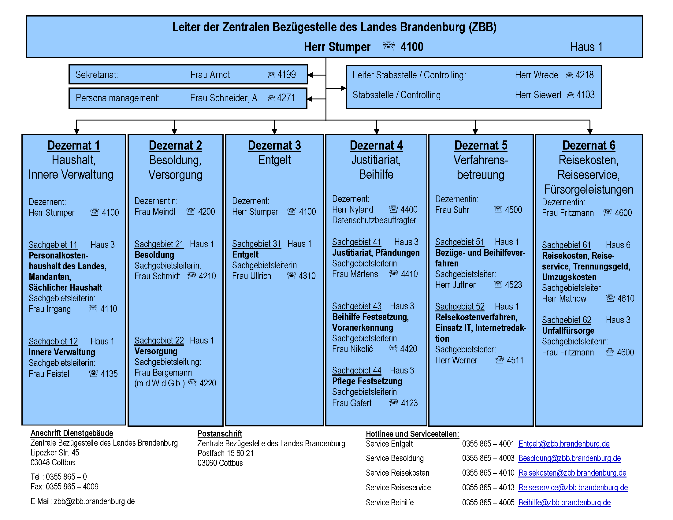 Die Zentrale Bezügestelle des Landes Brandenburg (ZBB) ist eine Einrichtung des Landes im Geschäftsbereich des Ministeriums der Finanzen und Europa. Der ZBB als größtem Personaldienstleister des Landes obliegt insbesondere: